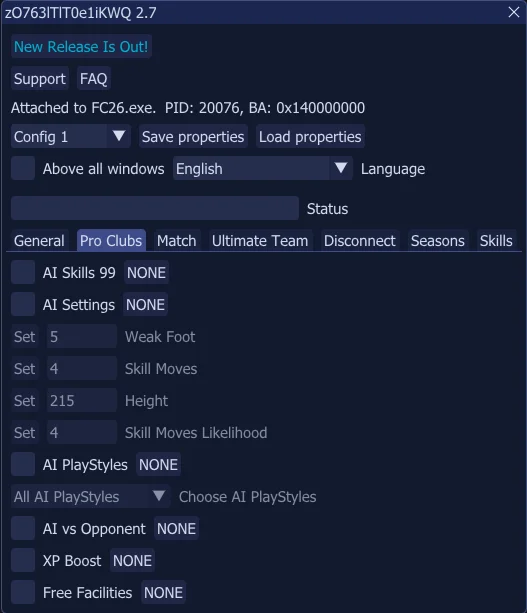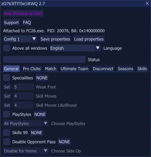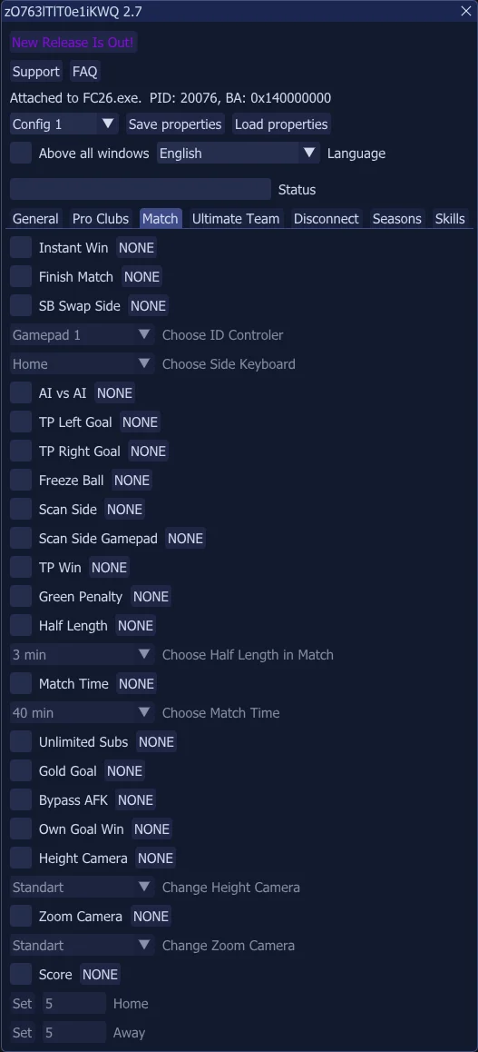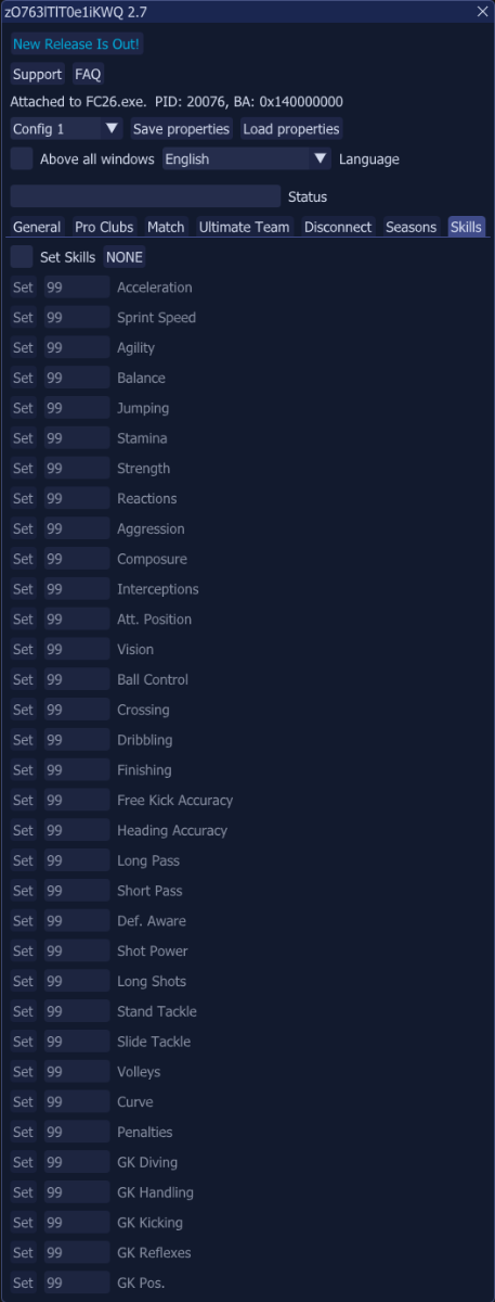 - Skills 99 – exposes characteristics in the match to 99 (not working in FUT)
